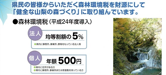 先ず、山梨県は、森林環境税として県民の皆様からご負担を頂いています。
