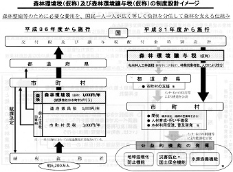 全国森林環境税(仮称)の新たな導入は、平成31年度から「森林環境譲与税(仮称)」として市町村に配分されます。